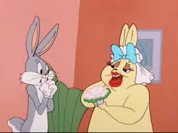Bugs meanwhile, has been on a diet of icicles, and takes Elmer’s carrot bait without question. Elmer brings him home and Millicent immediately falls for her new boyfriend. Bugs is less than amused. She demands a kiss, so Bugs shoves a goldfish to her lips. She likes it. The fish shoots himself. (Suicide CAN be funny. You just have to know how to do it.) Bugs tries to hide, but Millie’s strength easily helps remove him from his hiding places. She wants marriage now, and Bugs tries to teach her how the Americans do it: A long courtship.