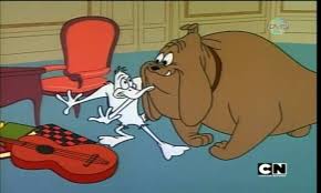 So Daffy plans to befriend the most definitely pekingese or even chihuahua with a ham. His arm is chewed by a bulldog.
